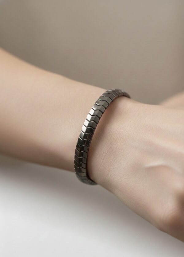 Natural Hematite Bracelet – a symbol of strength, grounding, and protection. Enhances focus, confidence, and emotional balance while shielding from negativity.