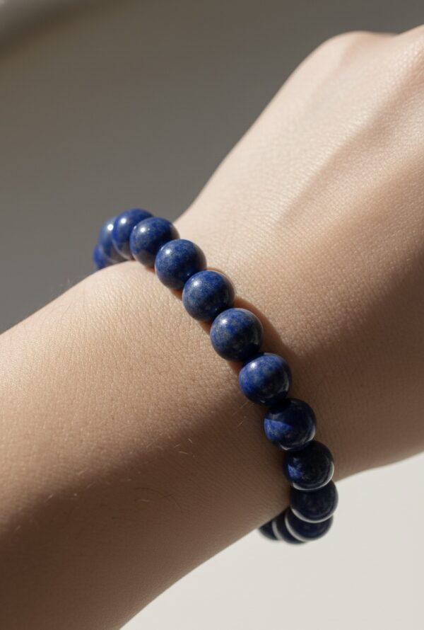 Natural Lapis Lazuli Bracelet – a symbol of wisdom, truth, and inner peace. Enhances clarity, intuition, and self-expression while promoting emotional healing and spiritual growth.
